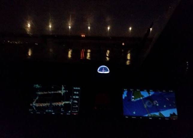 Samen plannen we een route op kaart langsheen obstakels en tussen de pijlers van bruggen of havens. We vertrekken bij schemering zodat u een gevoel krijgt met wat er werkelijk is en hoe dit er op radar uit ziet. Vervolgens, bij volledige duisternis, legt u hetzelfde traject af op onze terugweg naar de haven. Je bent volledig aangewezen op je instrumenten en je leert er op te vertrouwen!